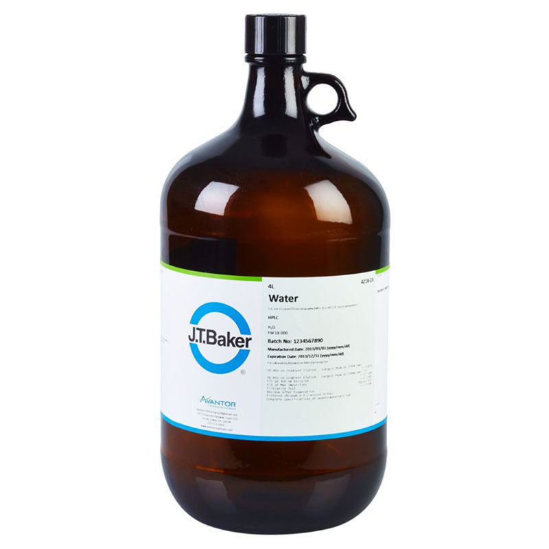 El agua HPLC J.T.Baker® es un solvente de alta pureza diseñado para cromatografía líquida de alta resolución (HPLC) y otras aplicaciones analíticas sensibles. Fabricada bajo estrictos controles de calidad, garantiza baja absorbancia UV, ausencia de partículas y mínimo contenido de orgánicos e iones disueltos, asegurando resultados confiables y reproducibles.