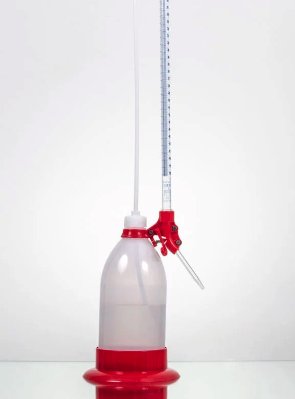 Buretas automáticas (Dr Schilling) c/franja Schellbach, botella plástica 1000 ml c/abrazadera soporte y tubo de PTFE.