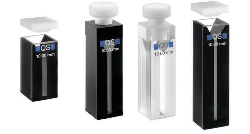 Celda de absorción Hellma® 110-QS de cuarzo Suprasil® con tapón de PTFE y ventanas pulidas, ideal para espectrofotometría UV/Vis y fotometría. Longitud de paso 1 mm, volumen de 350 µL. Alta transmisión y precisión óptica.