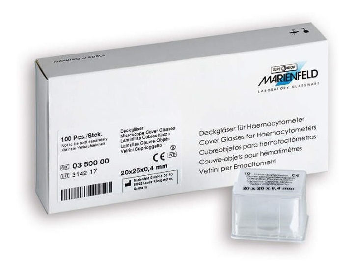 Características del Cubrecamaras Neubauer 20 x 26 x 0,4mm x 10u.