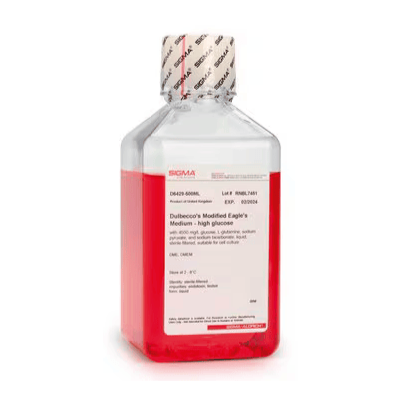 DMEM/F-12 - Medio Dulbecco modificado por Eagle/Mezcla de nutrientes Ham F-12 Contiene 3,15 g/L glucosa, L-glutamina, sodio piruvato y 15 mM HEPES, sin bicarbonato de sodio ni rojo de fenol. Polvo, apto para cultivo celular. Presentación 1 litro.