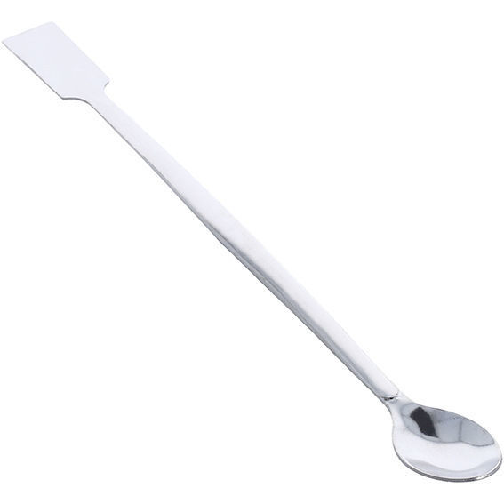 Espátula de acero inoxidable 2 en 1 con extremo en forma de cuchara y otro plano con cuerpo tipo alambre.