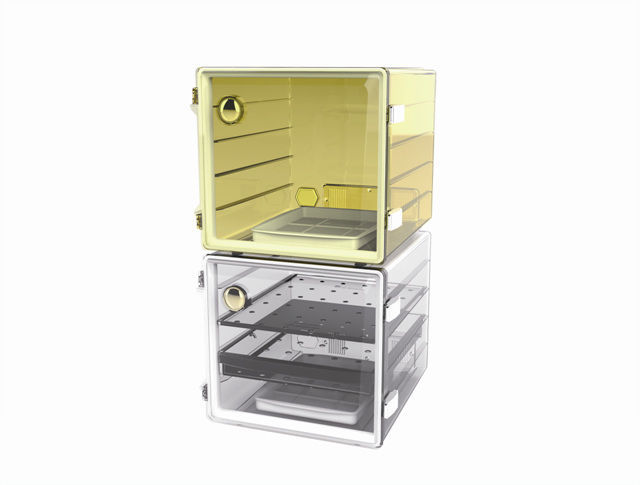 Gabinetes desecadores resistentes a rayos UV, disponibles en capacidades de 35 L (SDC-30U) y 50 L (SDC-45U). Fabricados en policarbonato de alta resistencia, con diseño apilable, sellado hermético con junta de silicona y estantes capaces de soportar hasta 5 kg cada uno. Ideales para proteger muestras sensibles a la humedad y a la luz en laboratorios con distintos requerimientos de espacio y capacidad.
