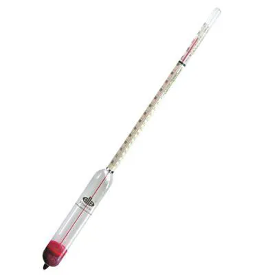 Mostímetro 3 escalas, 0,980-1,130 g/ml. 0-15 ºBé, 3-17% vol., unidad: g/ml -%vol -ºBe con termómetro liquido azul +10+30ºC.