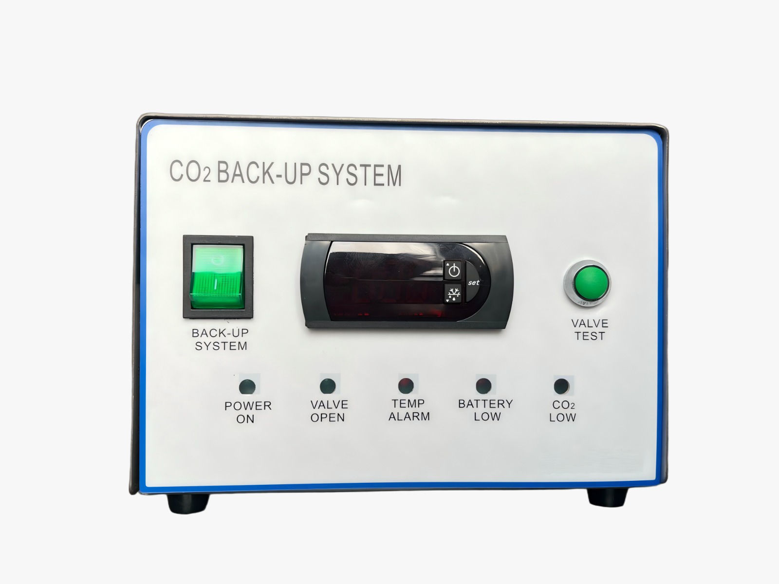 Cuando la temperatura interna supera el límite configurado, el sistema inyecta CO₂ líquido a través de válvulas controladas electrónicamente, manteniendo la temperatura segura y estable hasta que el freezer retome su funcionamiento normal.