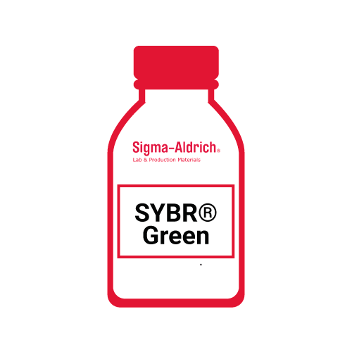 SYBR® Green I es un colorante cianina asimétrico patentado que se utiliza para detectar ácidos nucleicos. Consta de un sistema de anillo benzotiazolium o benzooxazolium N-alquilado, unido mediante un puente monometínico a un sistema de anillo piridinio o quinolinio. SYBR Green I se une a la ranura menor del ADN de doble cadena (dsDNA) y se excita a una longitud de onda de 480 nm, con una emisión máxima de fluorescencia a 520 nm.