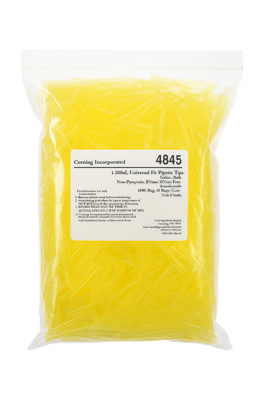 Características de los Tips Corning de 1-200μl, no estéril en bolsa x 1000u.