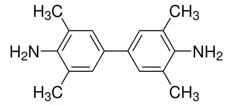 La 3,3′,5,5′-tetrametilbencidina (TMB) es un sustrato de la peroxidasa adecuado para procedimientos ELISA. El sustrato rinde un producto final soluble que es de color azul y puede leerse espectrofotométricamente a 370 o 655 nm. La reacción de la TMB puede detenerse con H2SO4 2 M (que produce un color amarillo) y leerse a 450 nm.